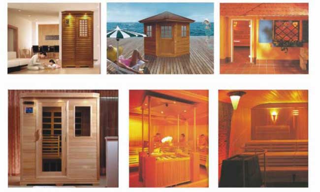 遠紅外桑拿提供30至60℃的獨特環境,紅外光波透照全身,使皮膚產生內熱,擴張毛孔,大量出汗,促進新陳代謝,加快血液循環,把新鮮的氧氣和營養物質帶給組織,代謝產物隨汗液排出體外,迅速補充精力,解除疲勞,是當前傳統桑拿的更新產品。